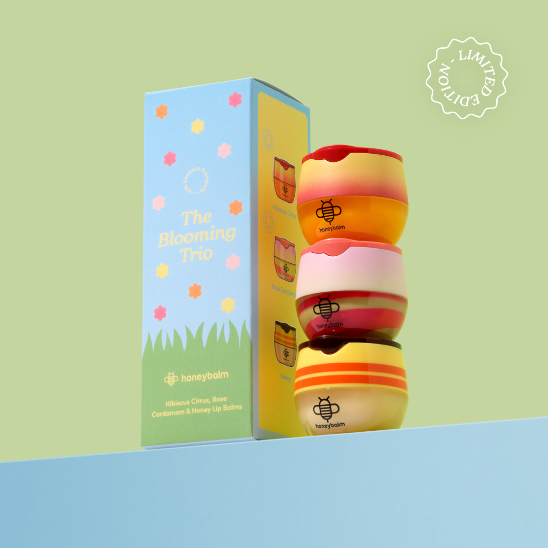 The Blooming Trio brings together three vibrant lip balms inspired by the season of flowers: Hibiscus Citrus with bright floral-citrus notes, Rose Cardamom with a subtle natural tint, and the nourishing Honey bestseller. Enriched with beeswax, vitamin E, and propolis, each balm hydrates, softens, and protects, leaving lips smooth, comfortable, and delicately scented with floral sweetness and warm spice. Perfect for gifting, sharing, or treating yourself.